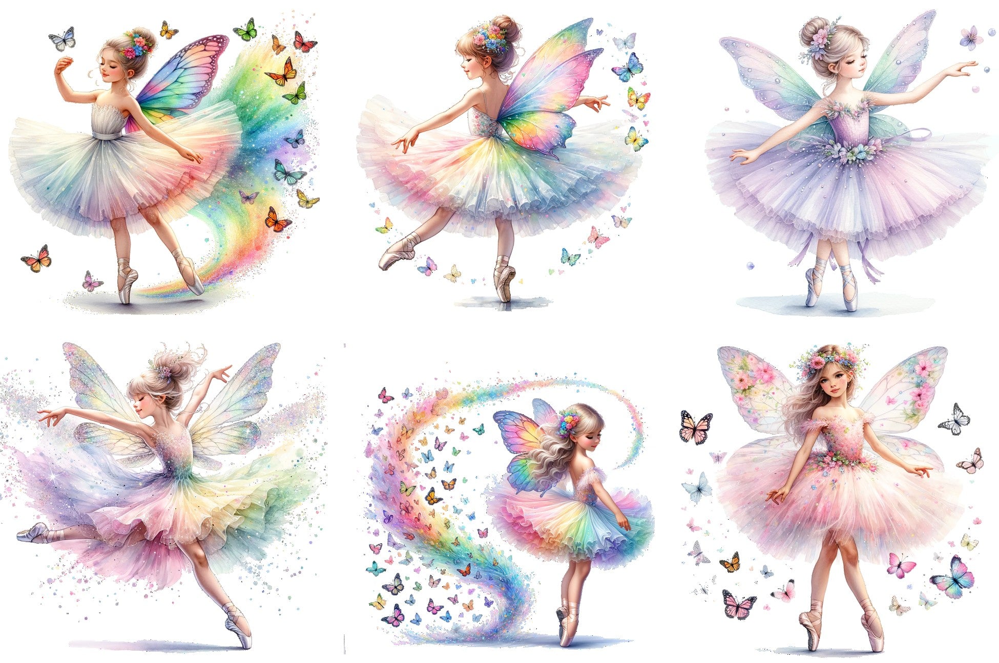 6 Piece 3"x3" Butterfly Ballerinas 100% Cotton Fabric Panel Squares Quilting Blocks
