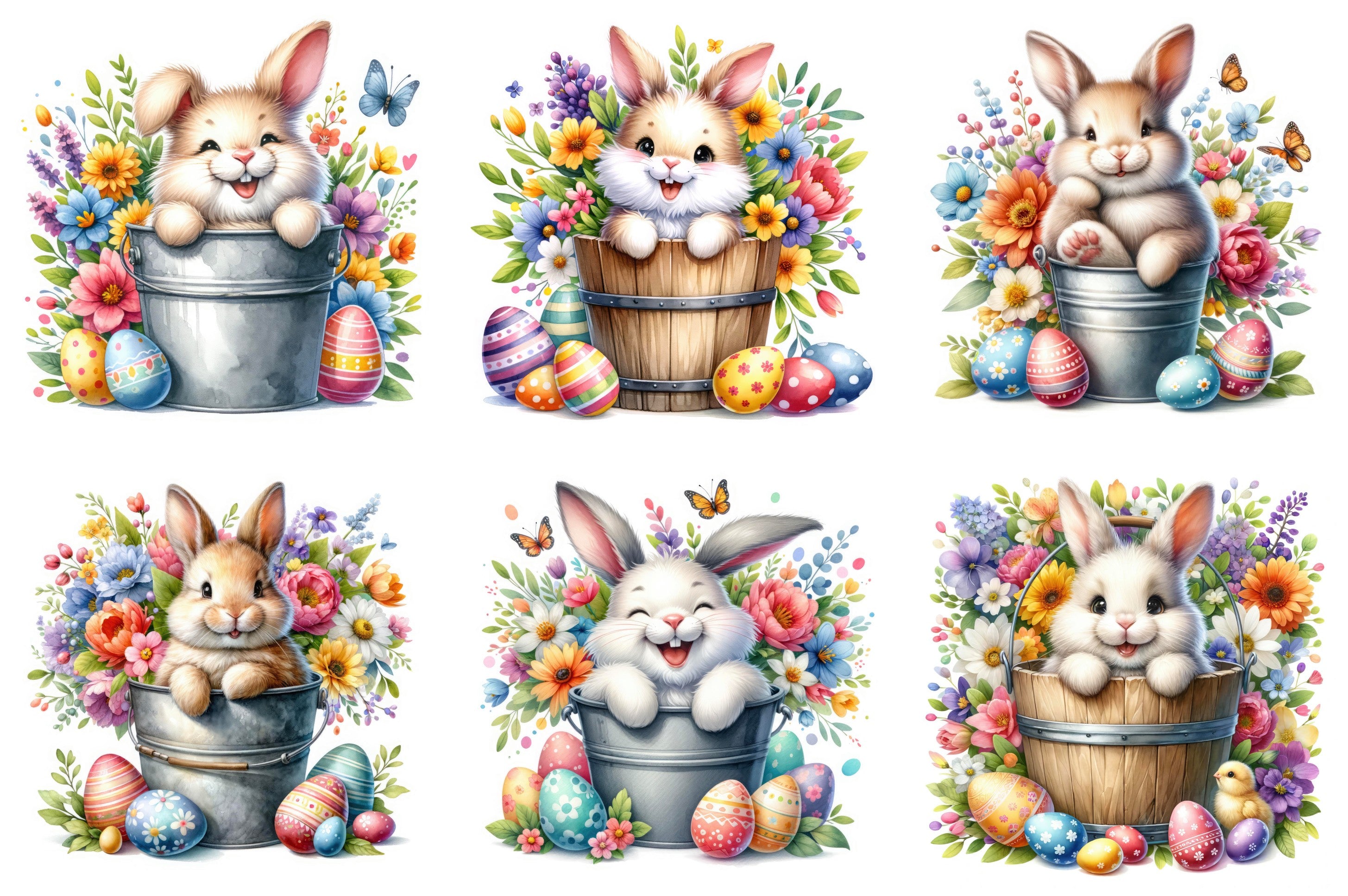 6 Piece 6"x6" Spring Easter Bunny 100% Cotton Fabric Panel Squares Quilting Blocks